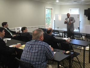 On February 16, 2017, Aubrey Smith and Ben Parks of Southern Lawyers Insurance Program spoke at the second Chandler Law Breakfast of Champions seminar. The breakfast seminar was hosted by Elizabeth Gallo Court Reporting. The seminar was attended by lawyers from a wide variety of practice areas, including personal injury (plaintiff and defense), professional liability (plaintiff and defense), workers compensation (plaintiff and defense), family law, and estate planning. Mr. Smith and Mr. Parks discussed their proactive approach to the claims handling process, what lawyers should do when they get a claim, what types of coverages are available to lawyers, and specific insurance policy provisions that lawyers should look for when applying for or renewing their professional liability insurance coverage. Chandler Law provided breakfast.